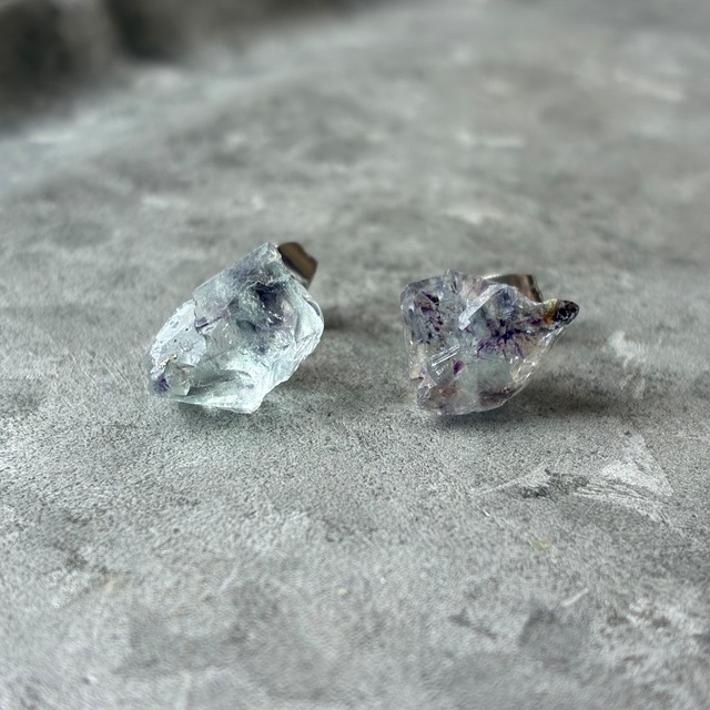 フローライト 鉱物ピアス 一点もの 原石 天然石 金属アレルギー対応 ハンドメイド アクセサリー パワーストーン (No.2840)