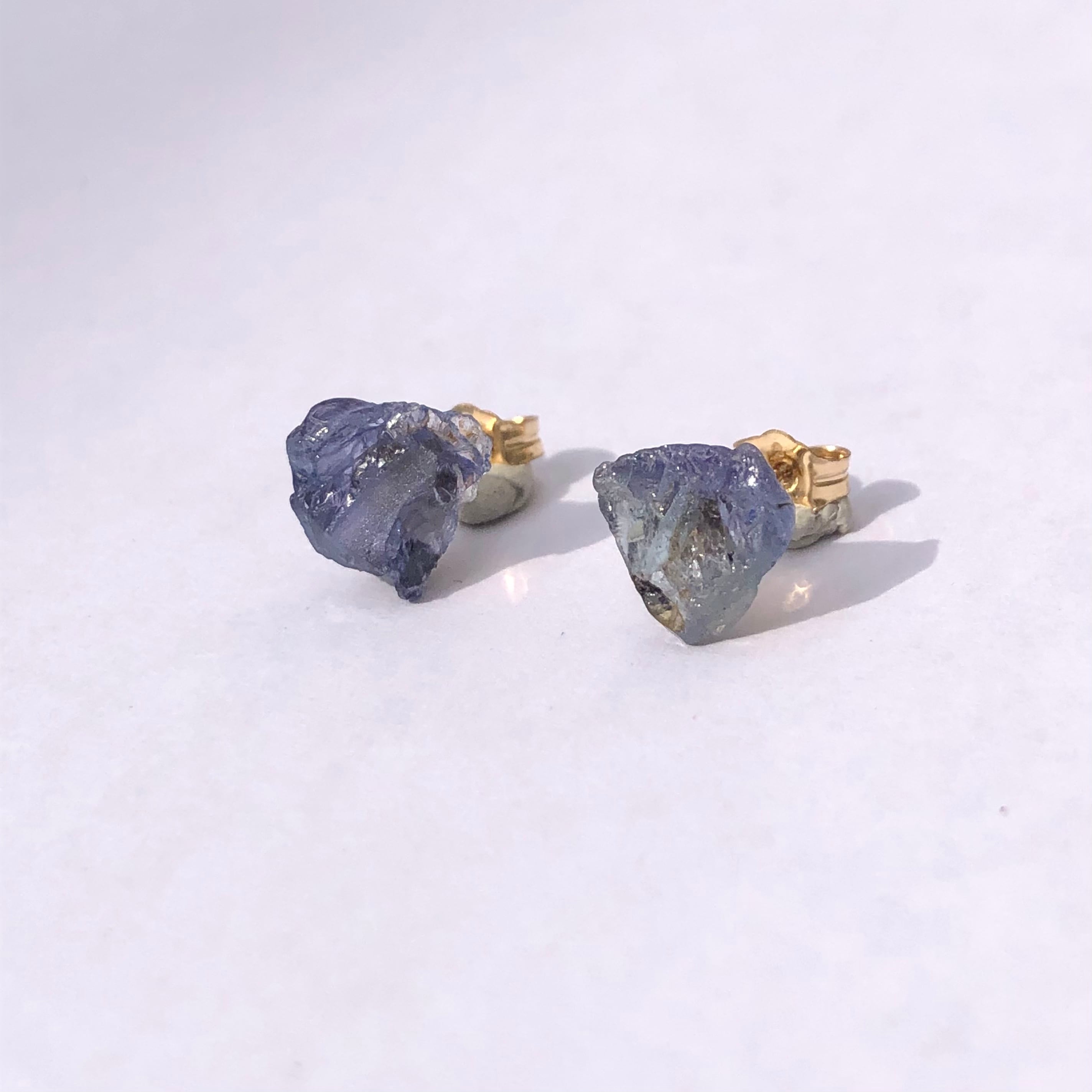 タンザナイトの天然の原石を使用したピアスです。(両耳セット販売です。)