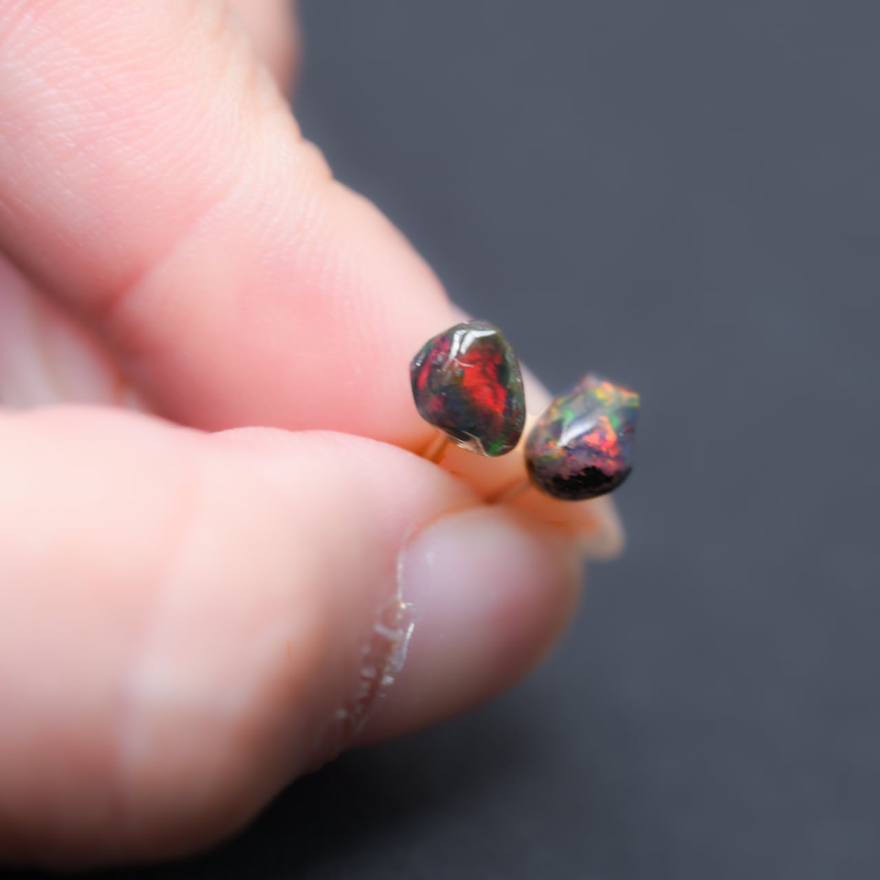 シンプルで小粒なオパールの原石を使用したスタッドピアスです。(両耳セット販売です。)