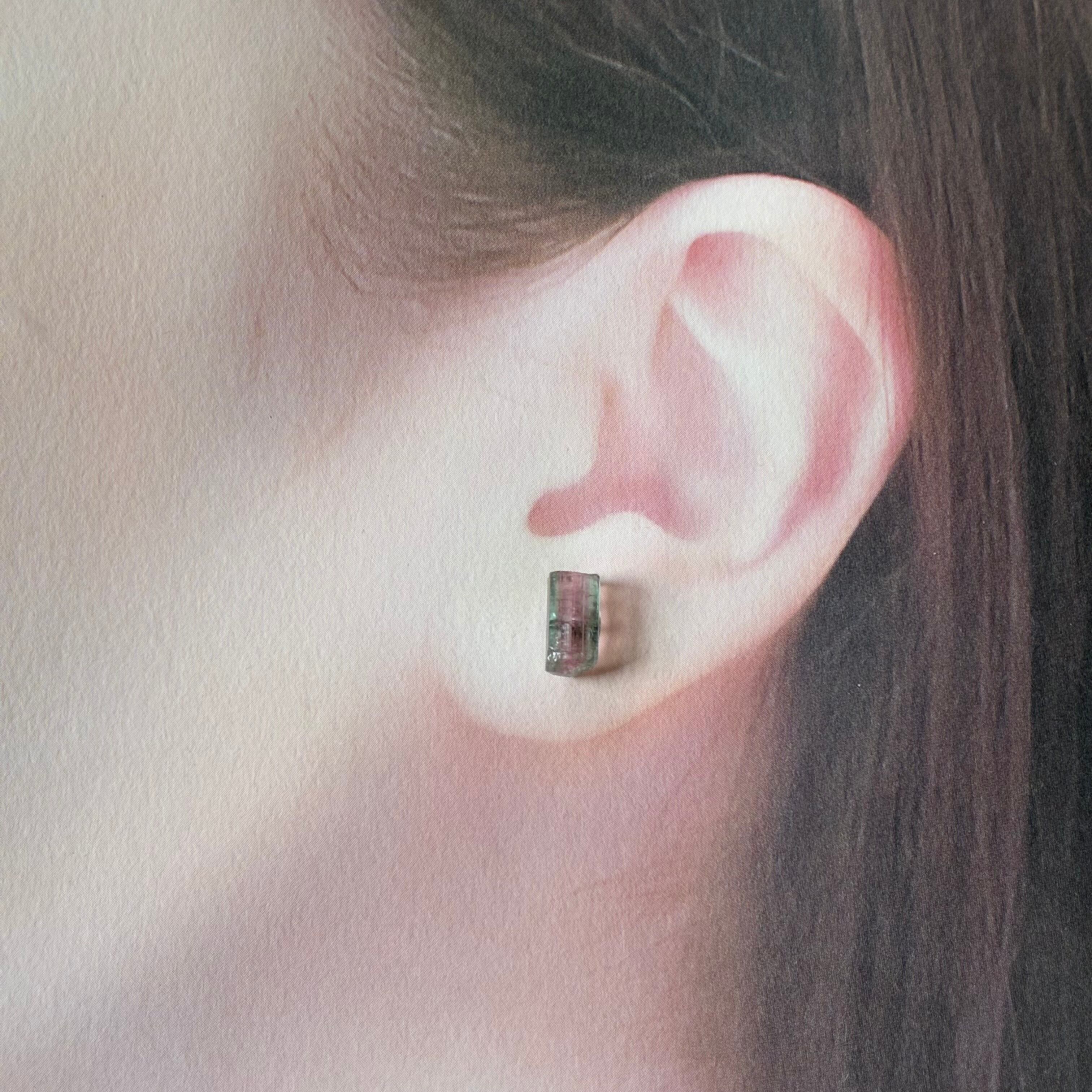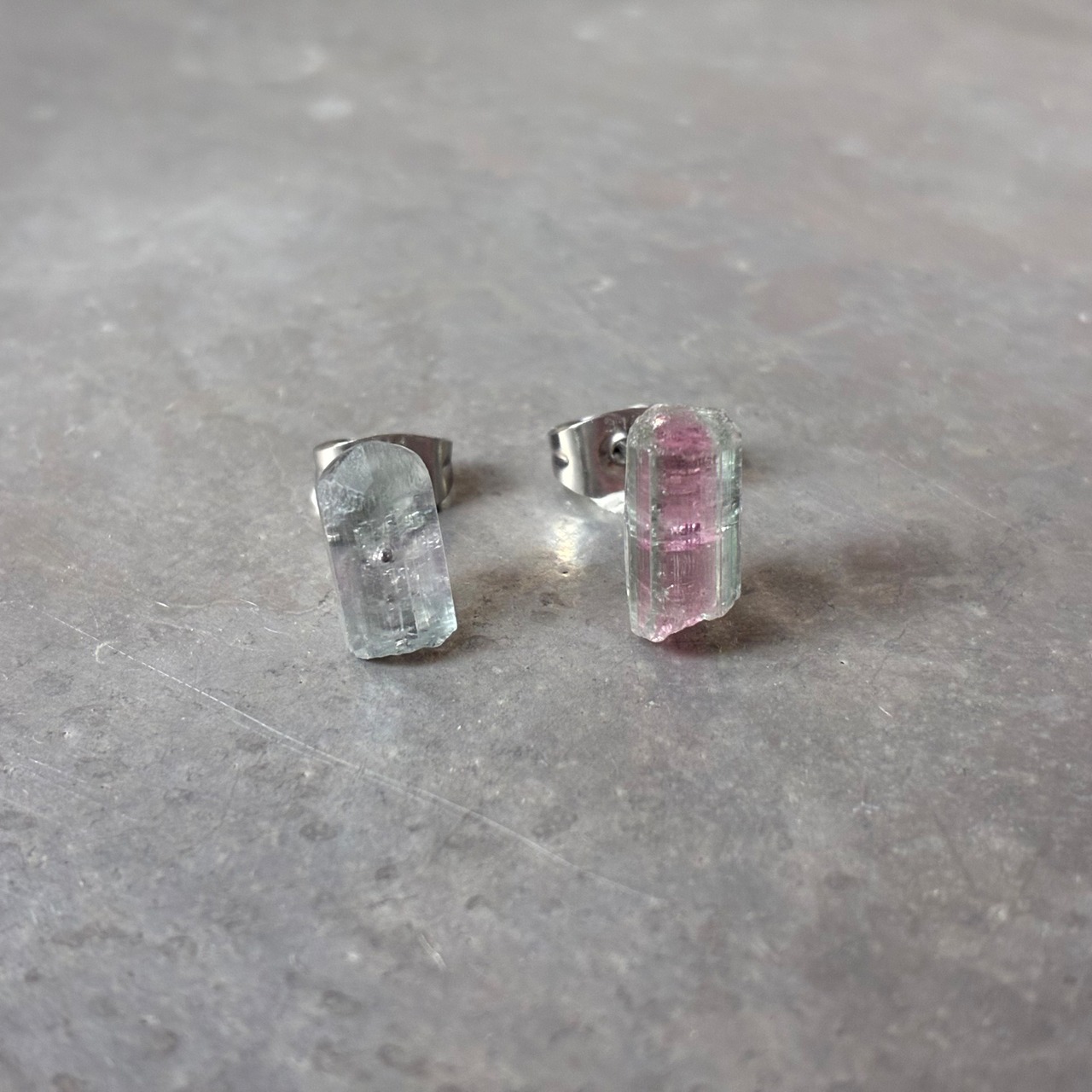 トルマリンの天然の原石を使用したピアスです。(両耳セット販売です。)