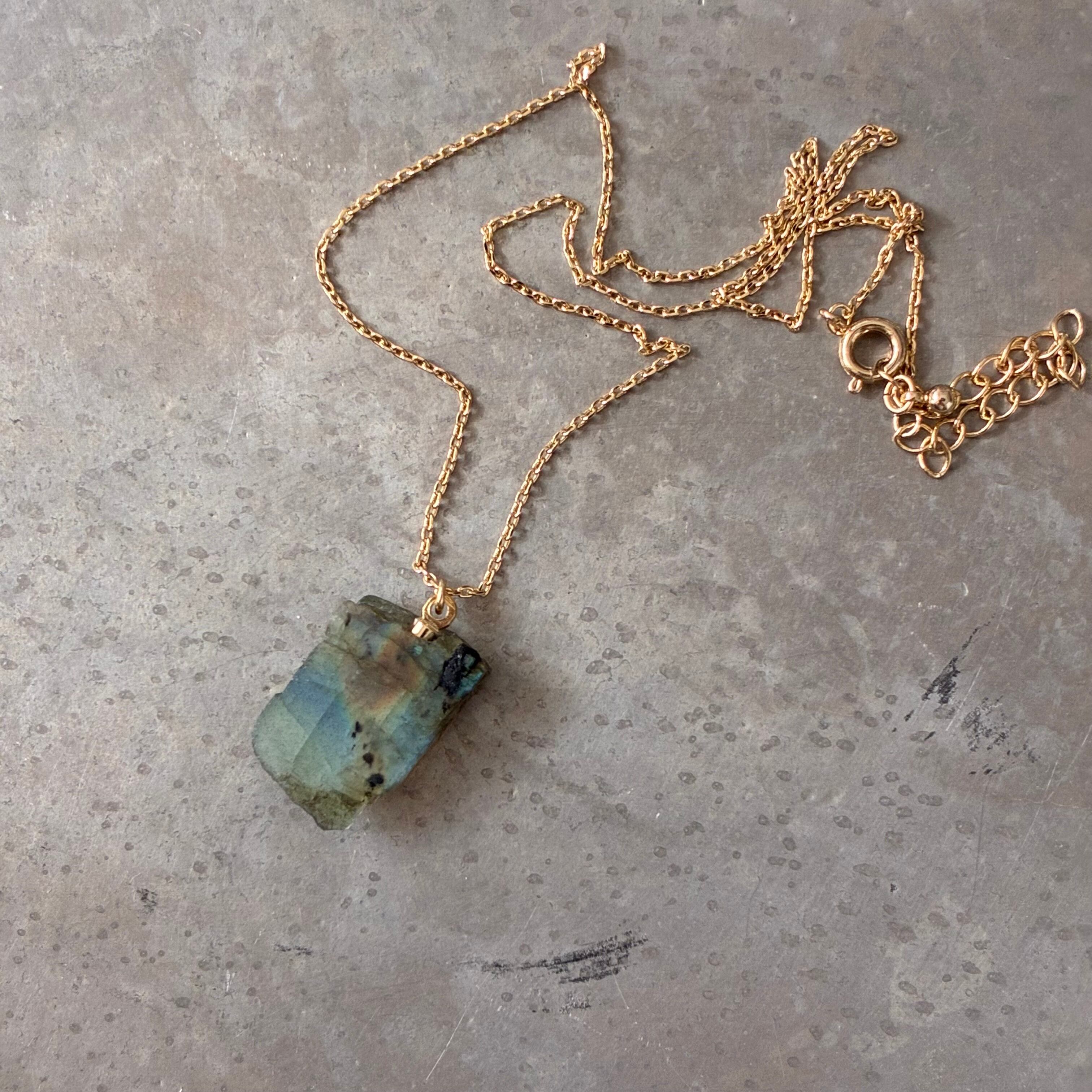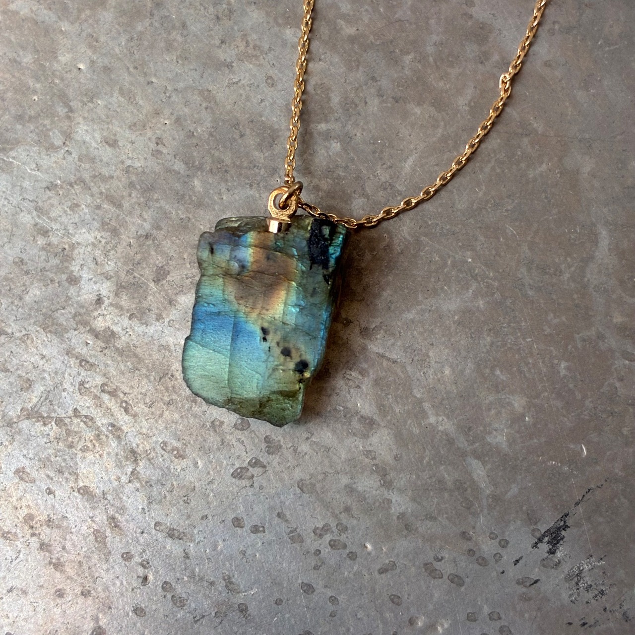 ラブラドライトは遊色効果が特徴で、「月」と「太陽」を象徴するといわれています。