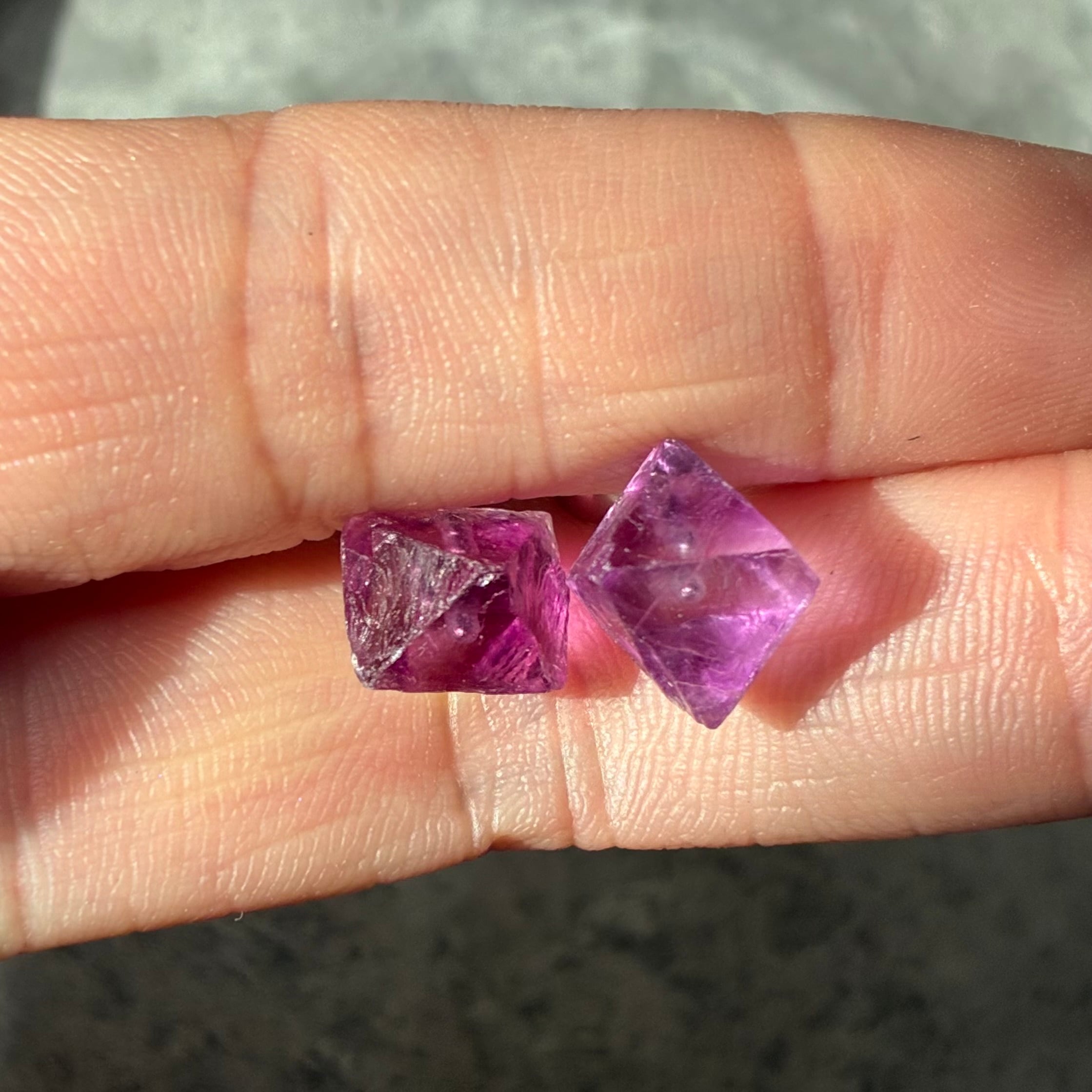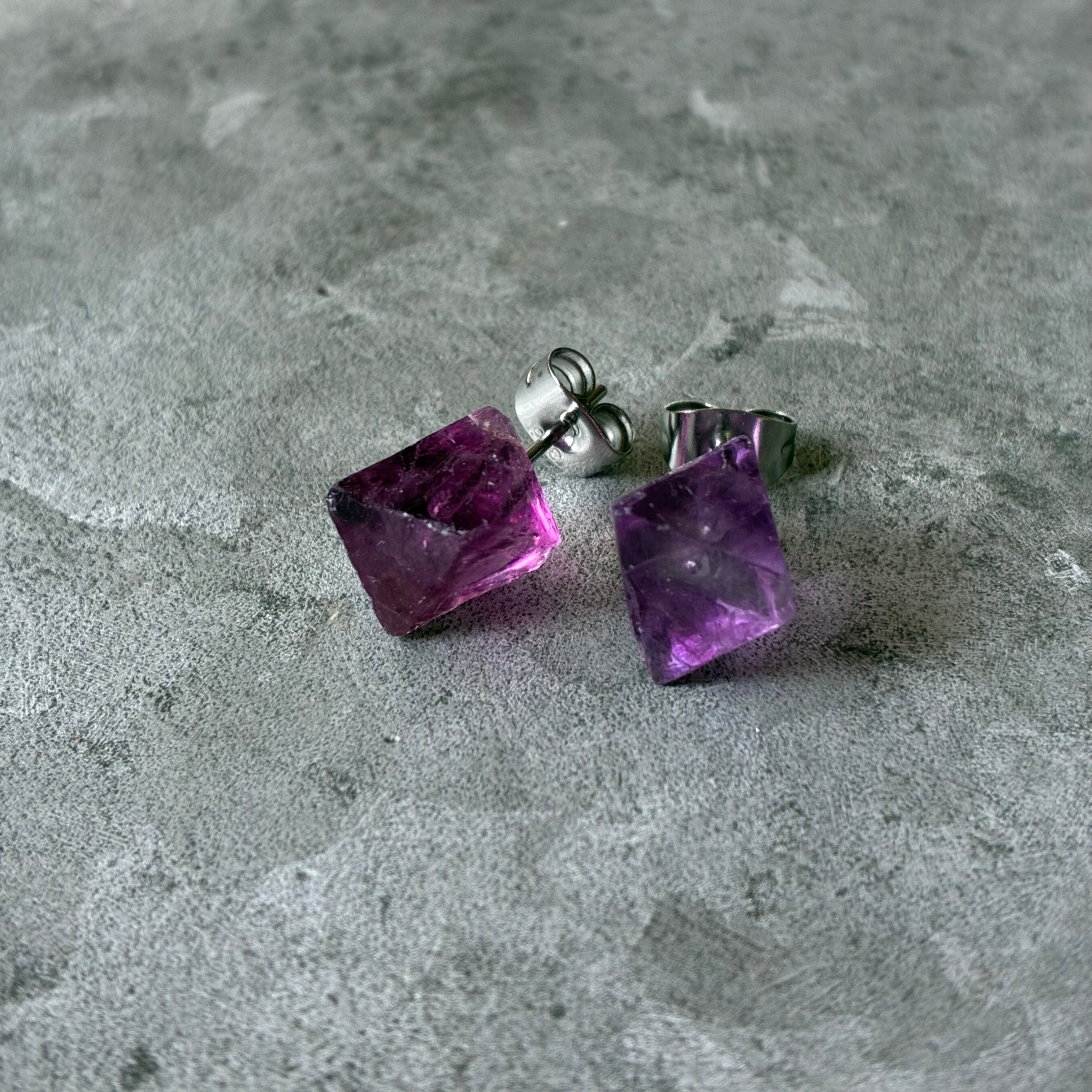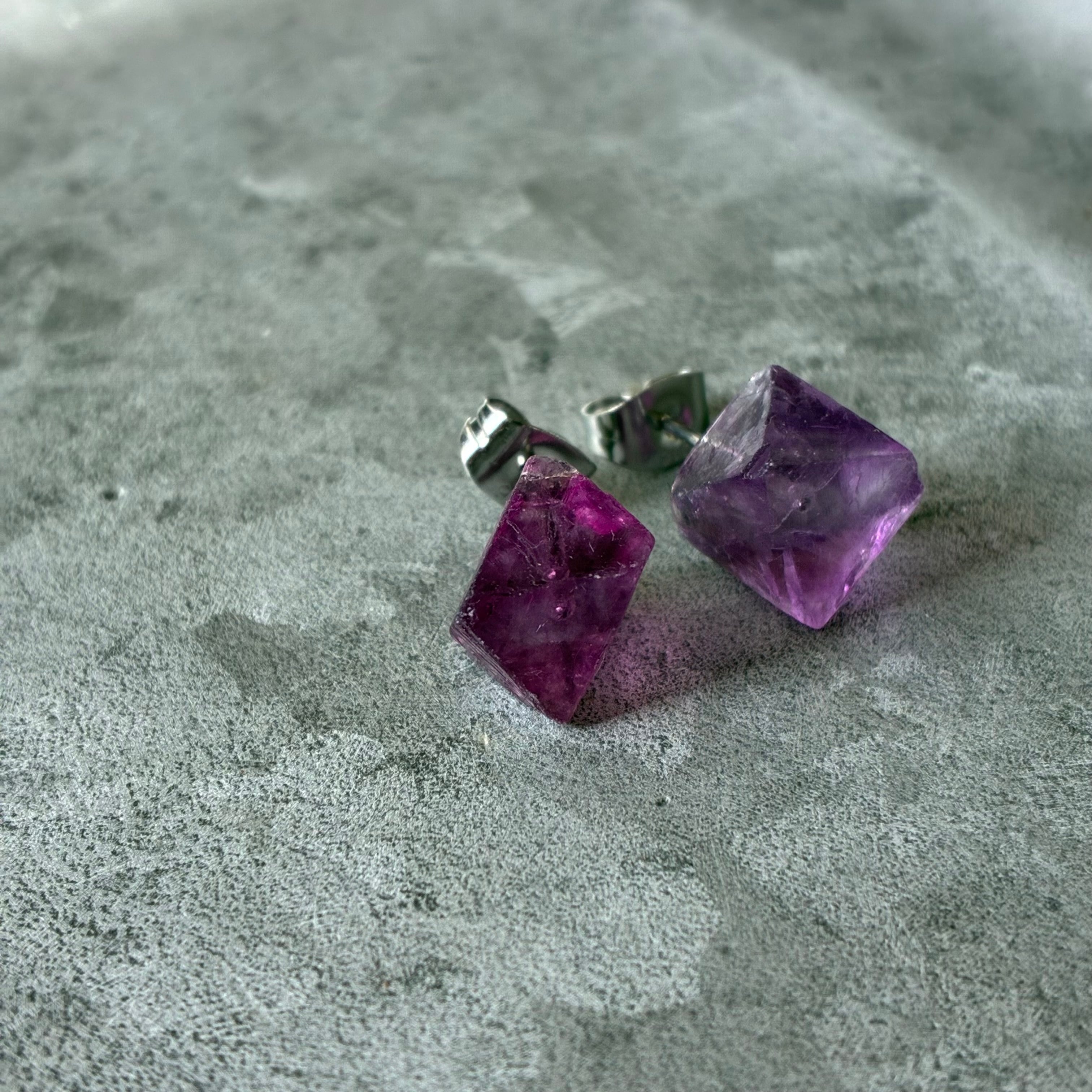 フローライトの天然の原石を使用したピアスです。(両耳セット販売です。)