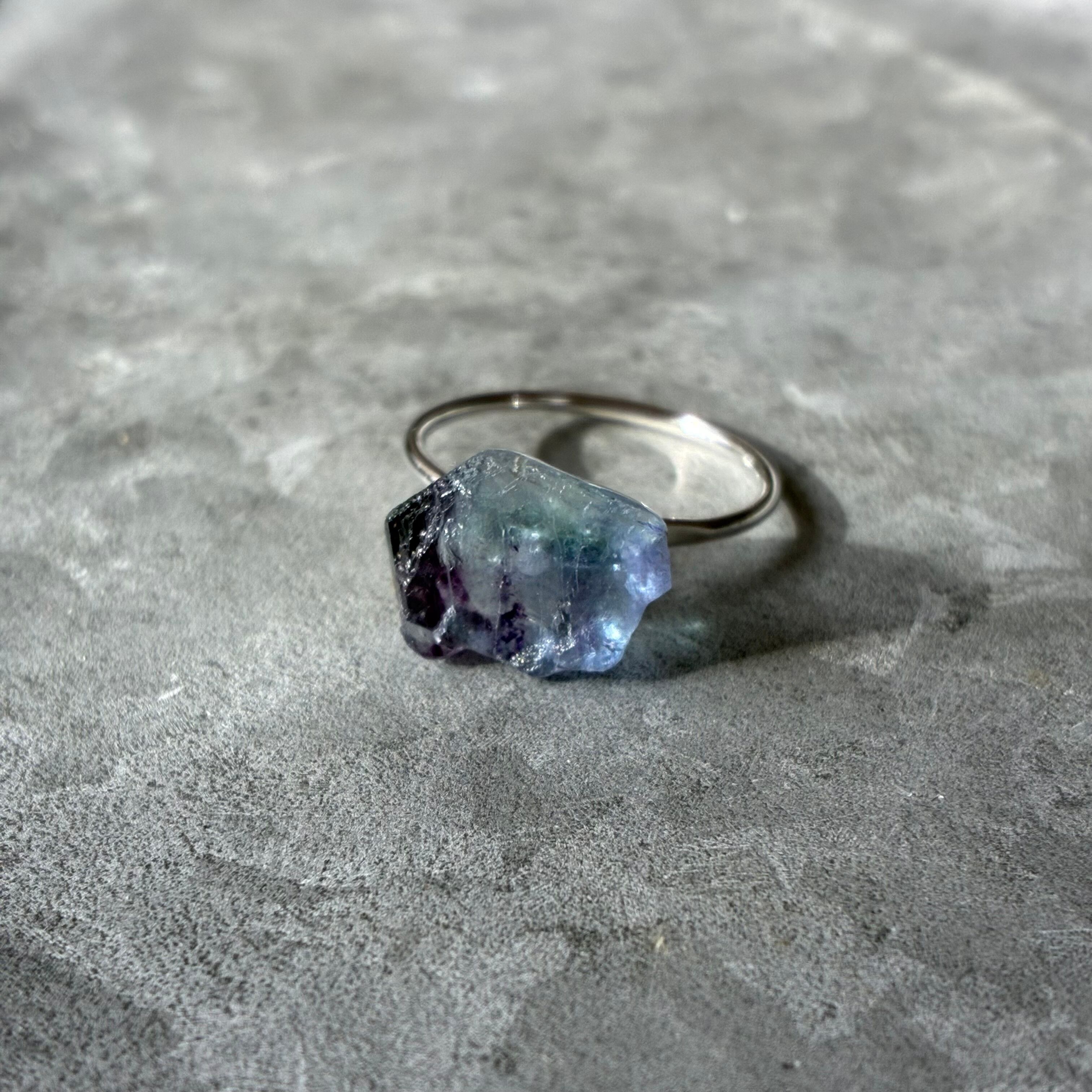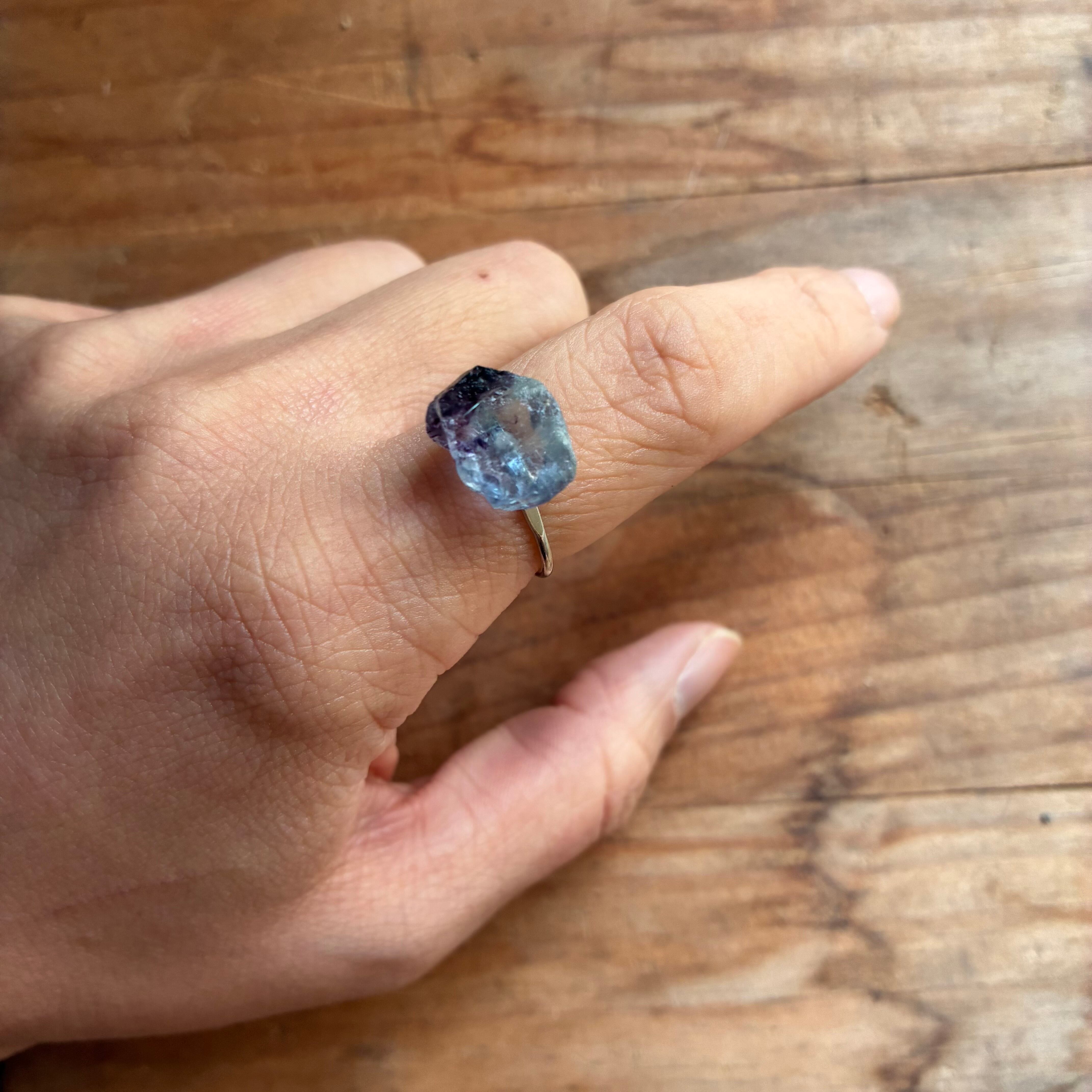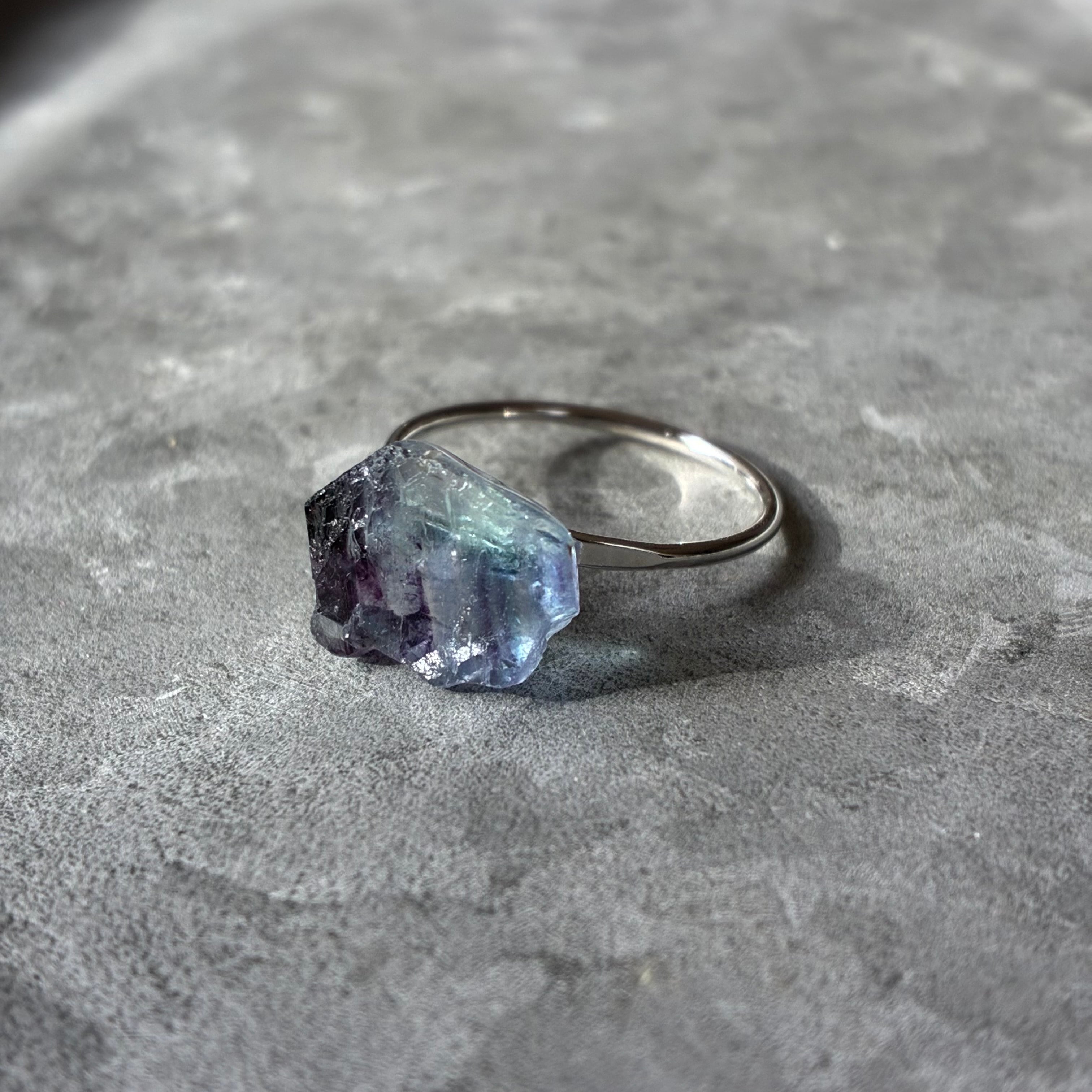 フローライトの天然の原石を使用したリングです。