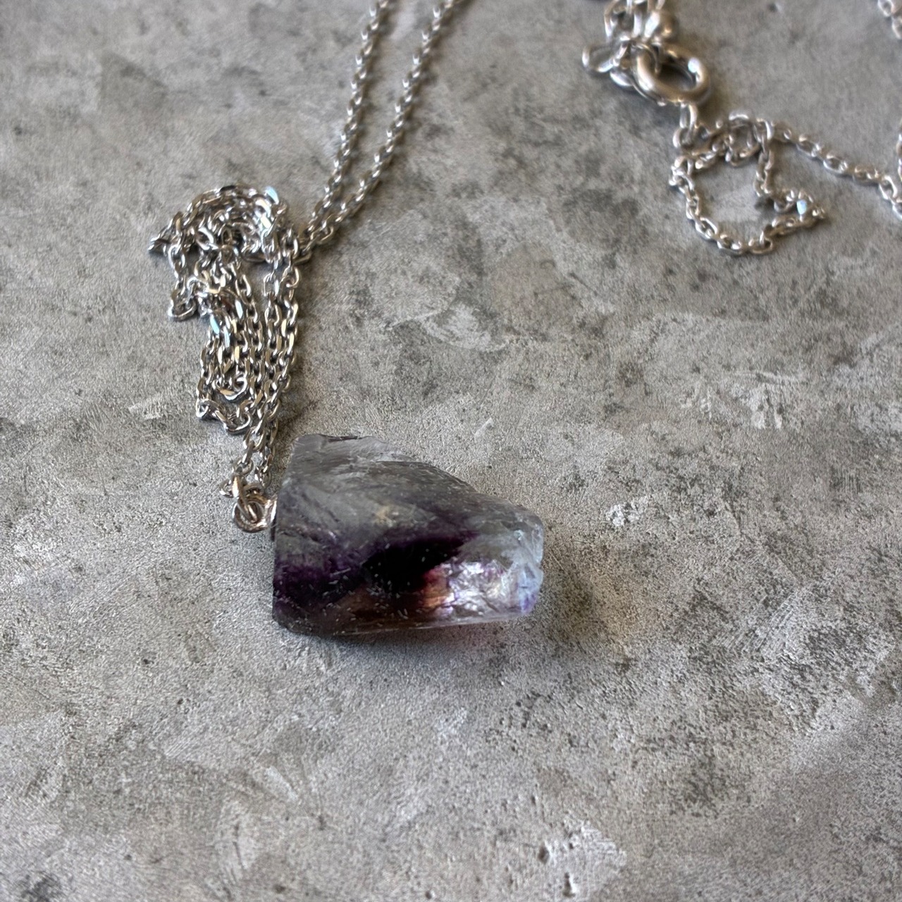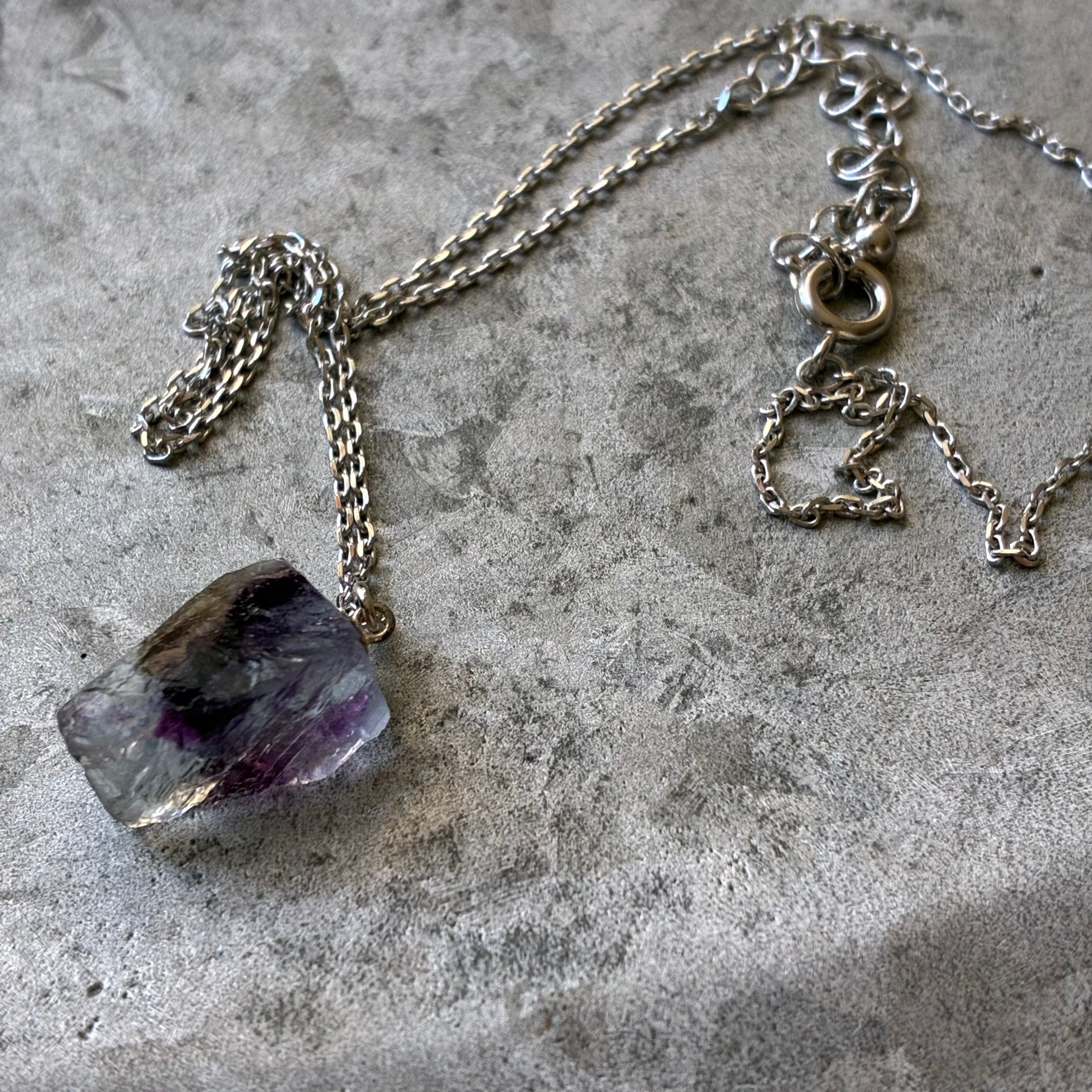 フローライトの天然の原石を使用したネックレスです。