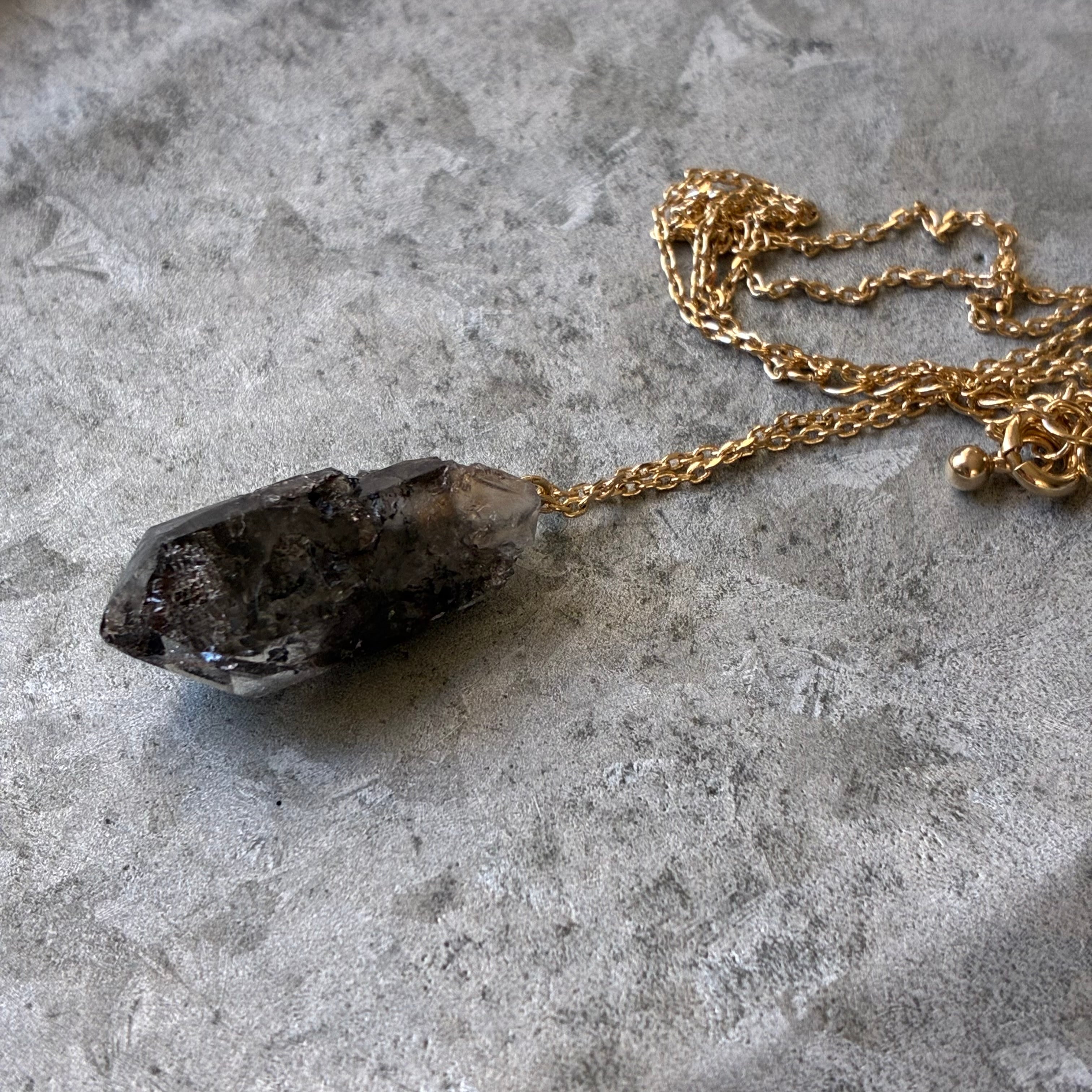 カーボンクォーツの天然の原石を使用したネックレスです。