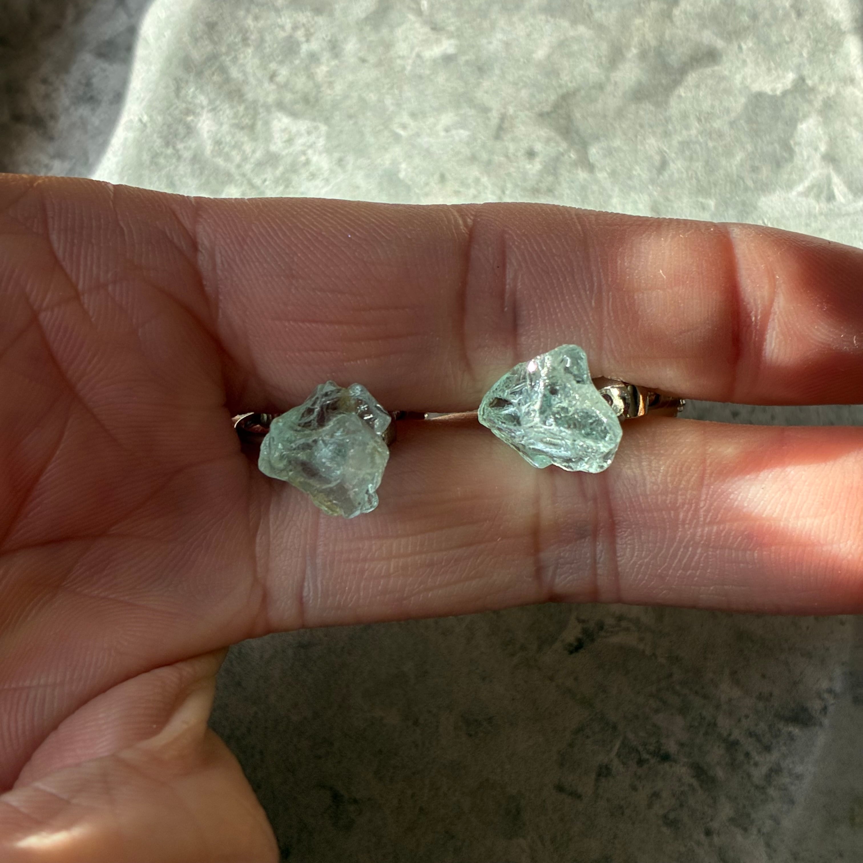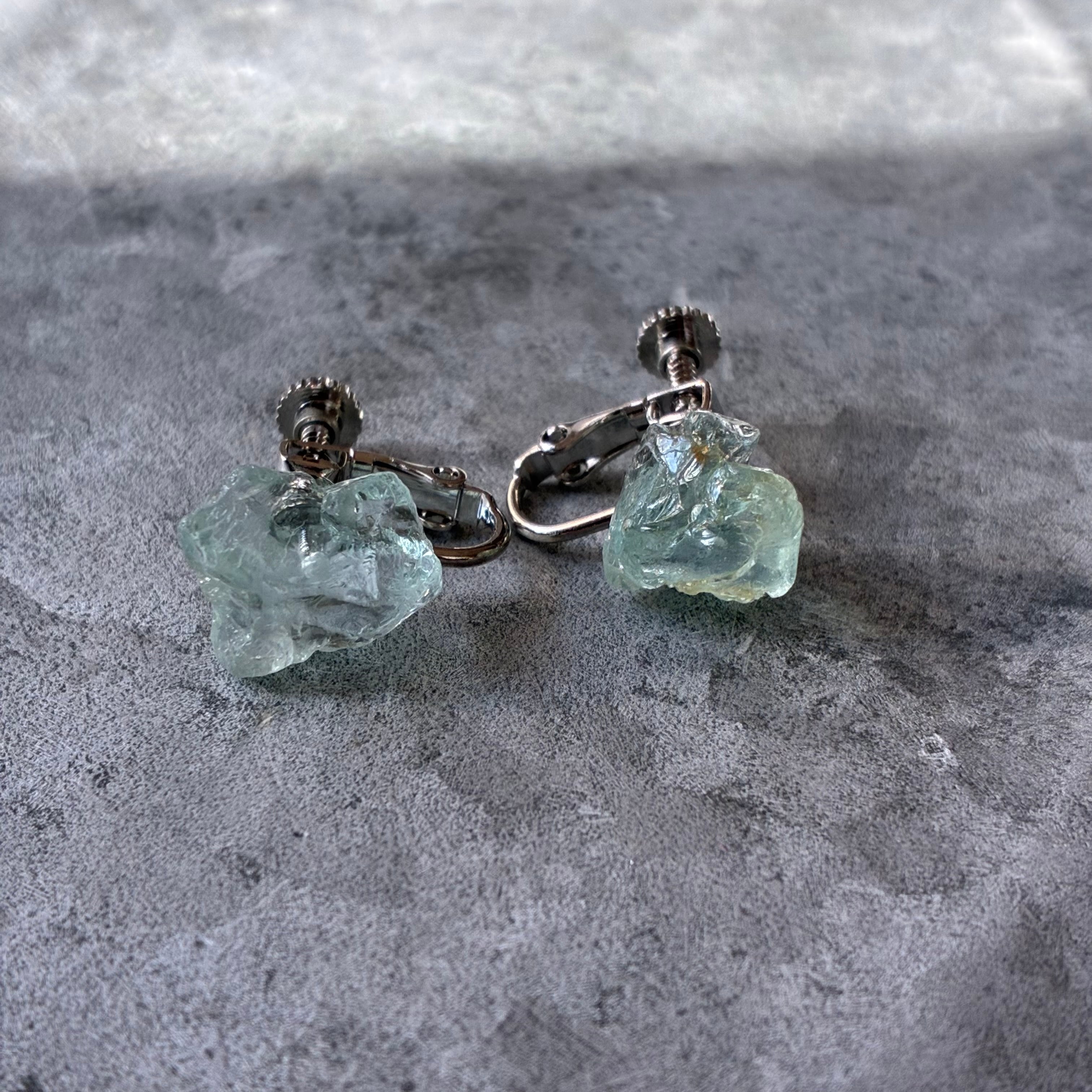 アクアマリンの天然の原石を使用したイヤリングです。(両耳セット販売です。)