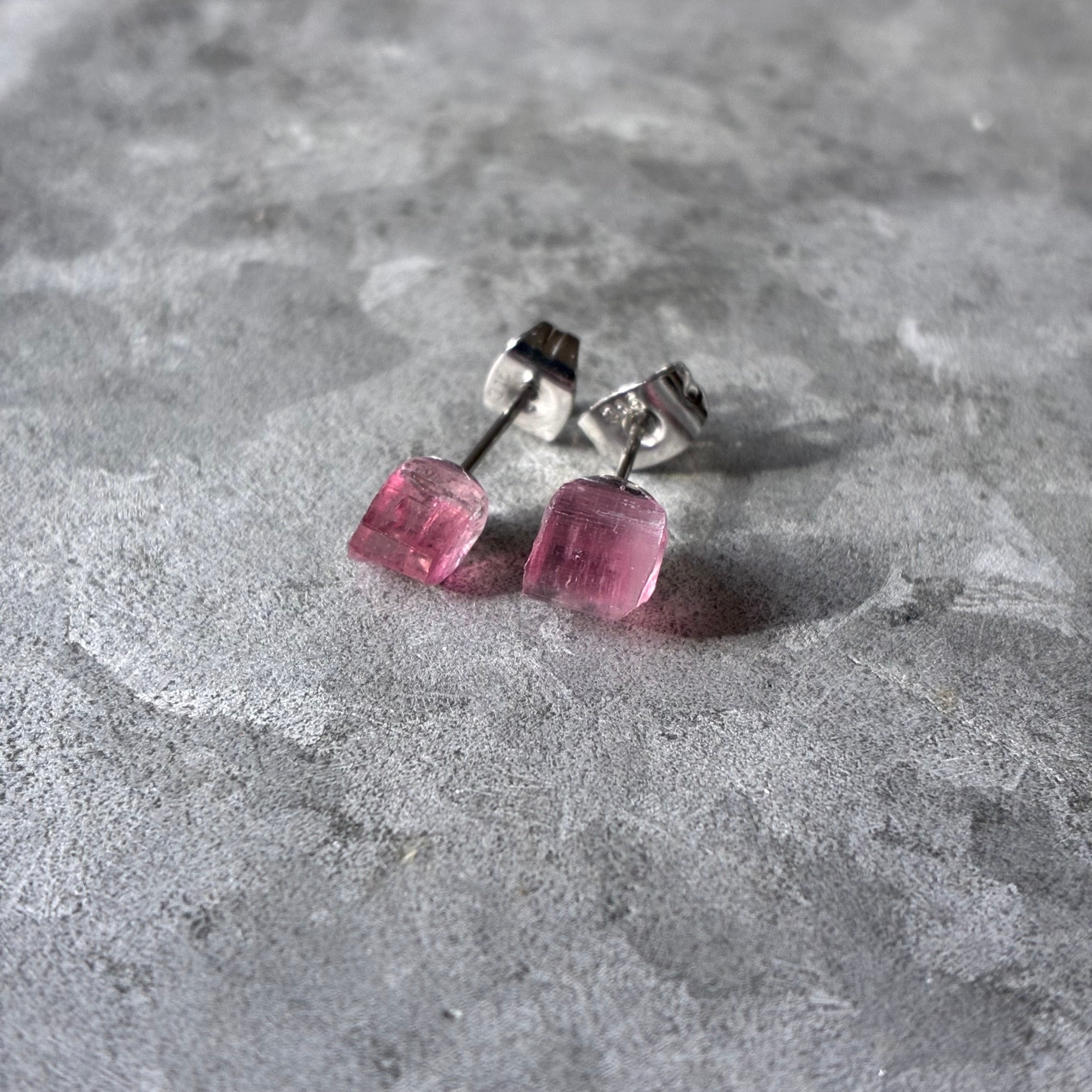 トルマリンの天然の原石を使用したピアスです。(両耳セット販売です。)