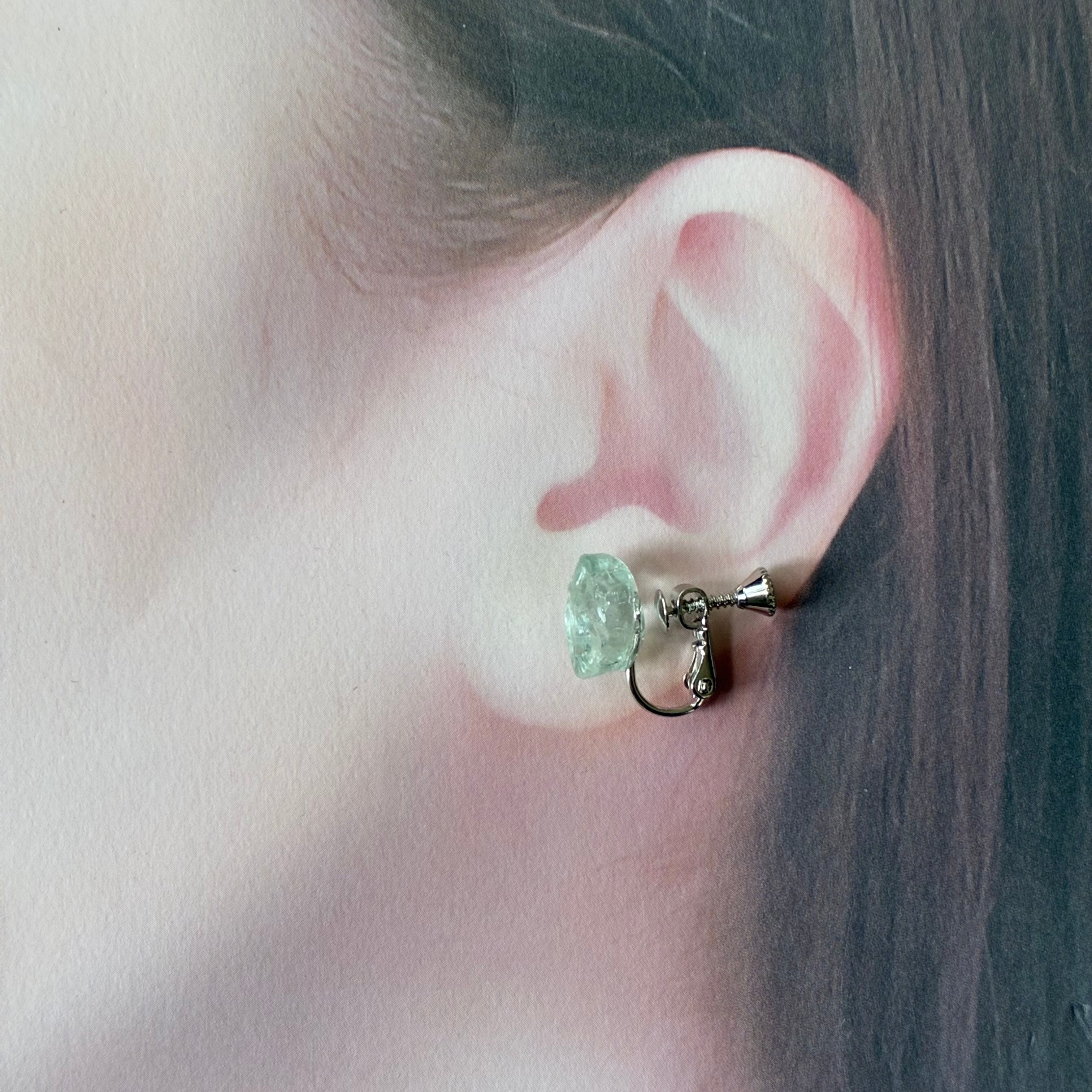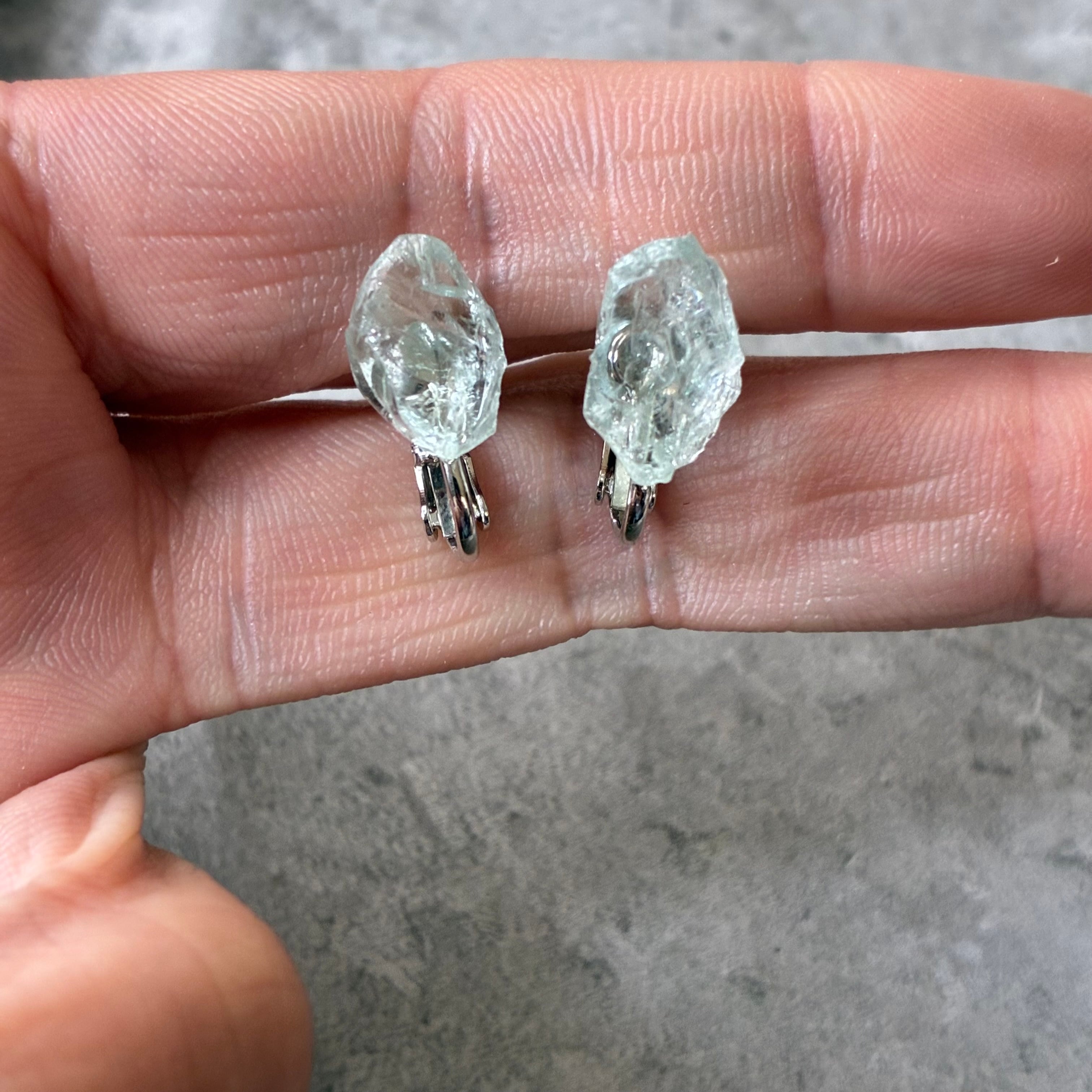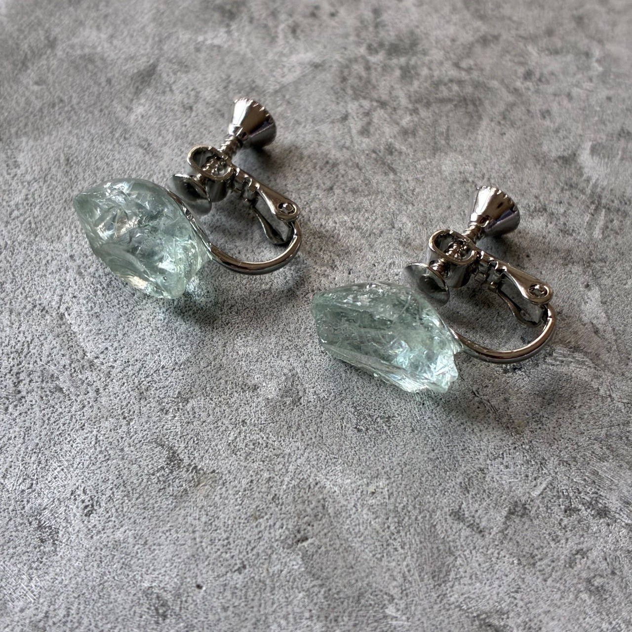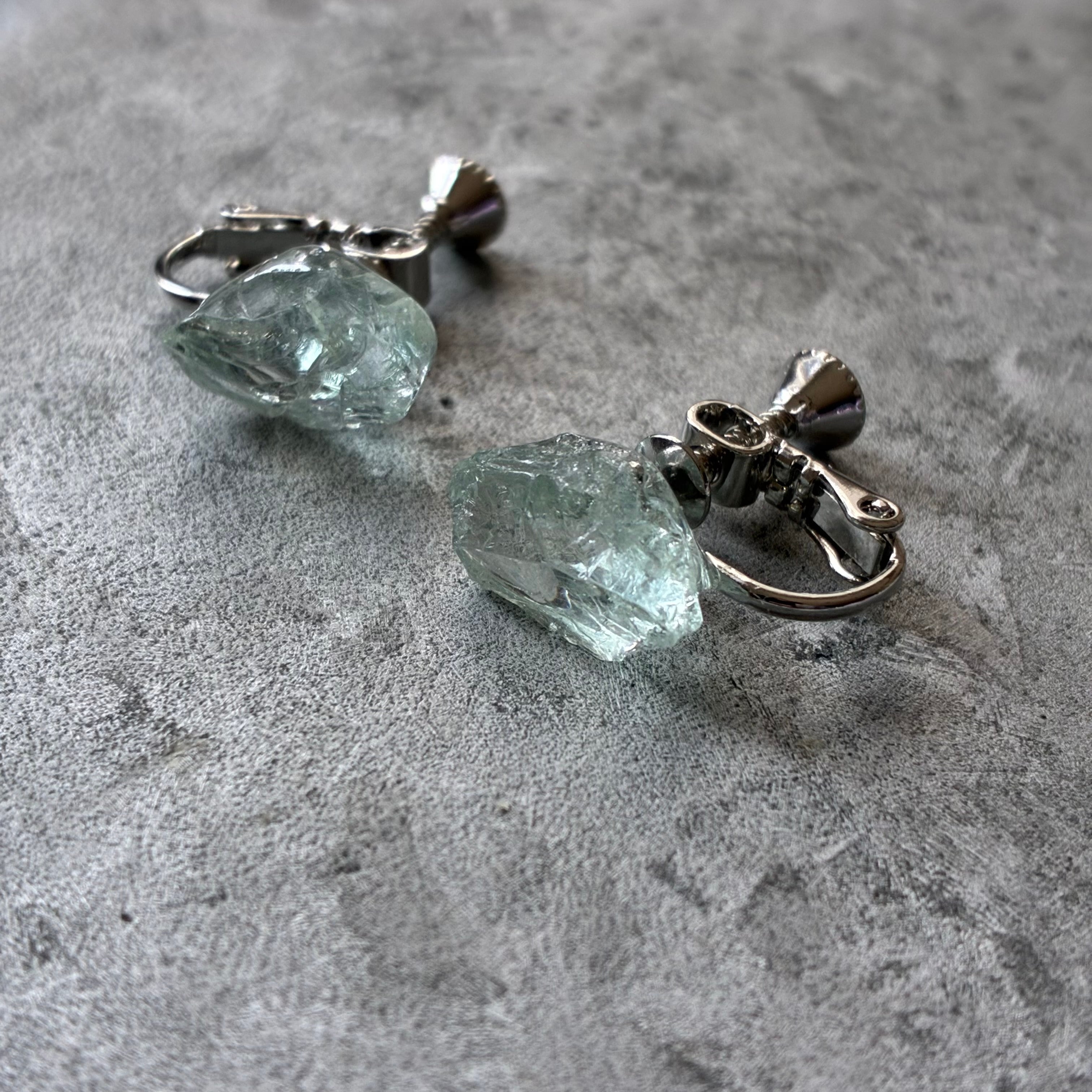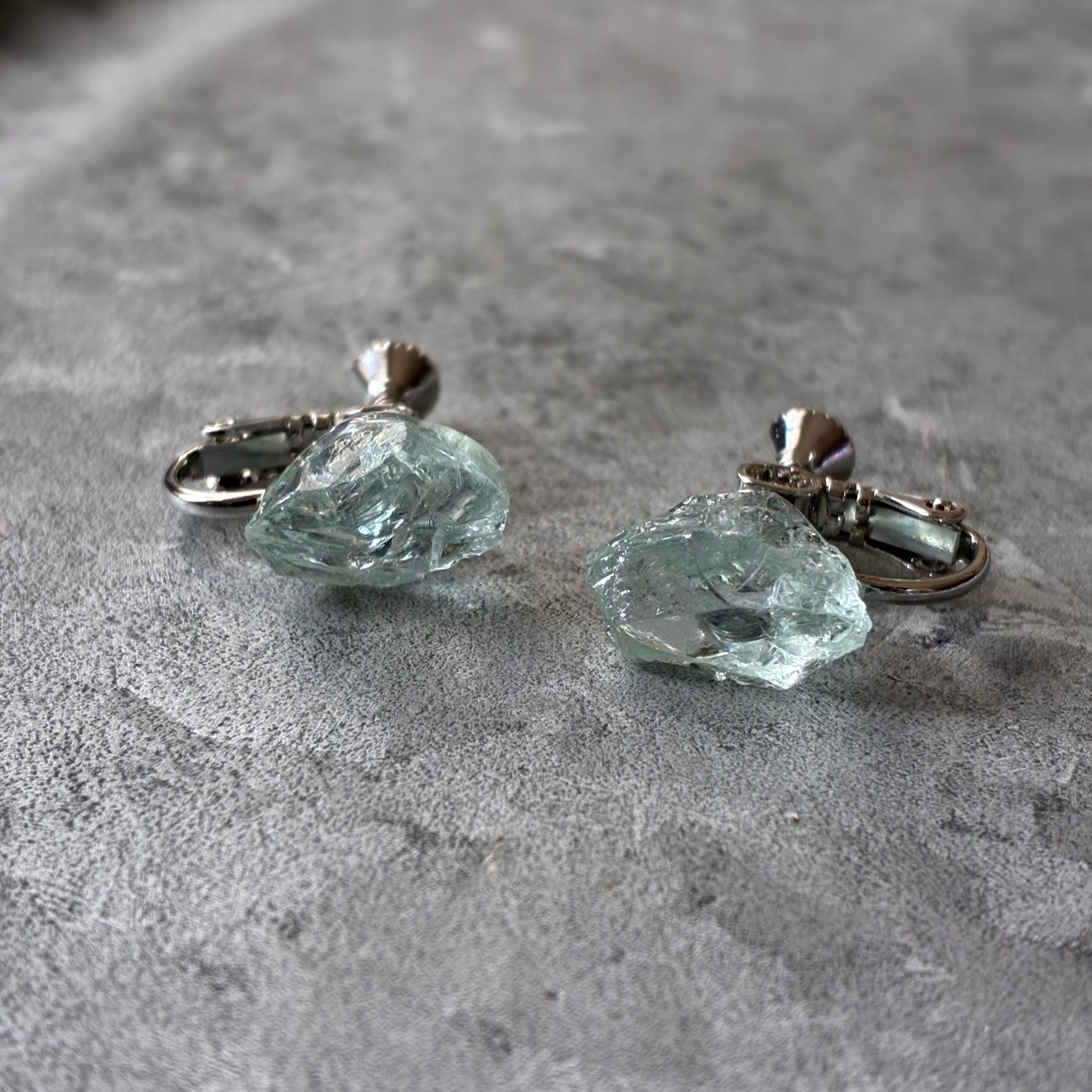 アクアマリンの天然の原石を使用したイヤリングです。(両耳セット販売です。)