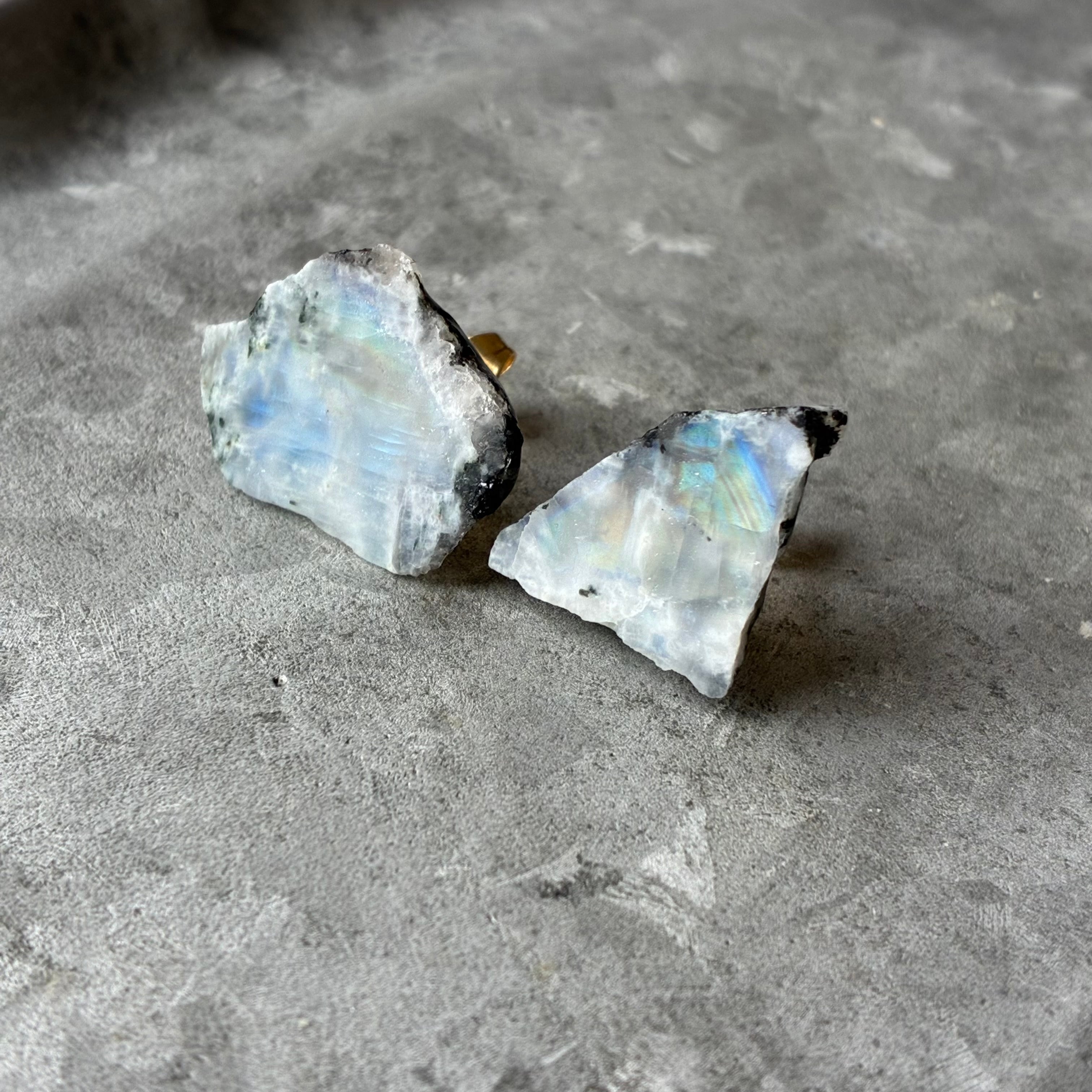 ムーンストーンの天然の原石を使用したピアスです。(両耳セット販売です。)