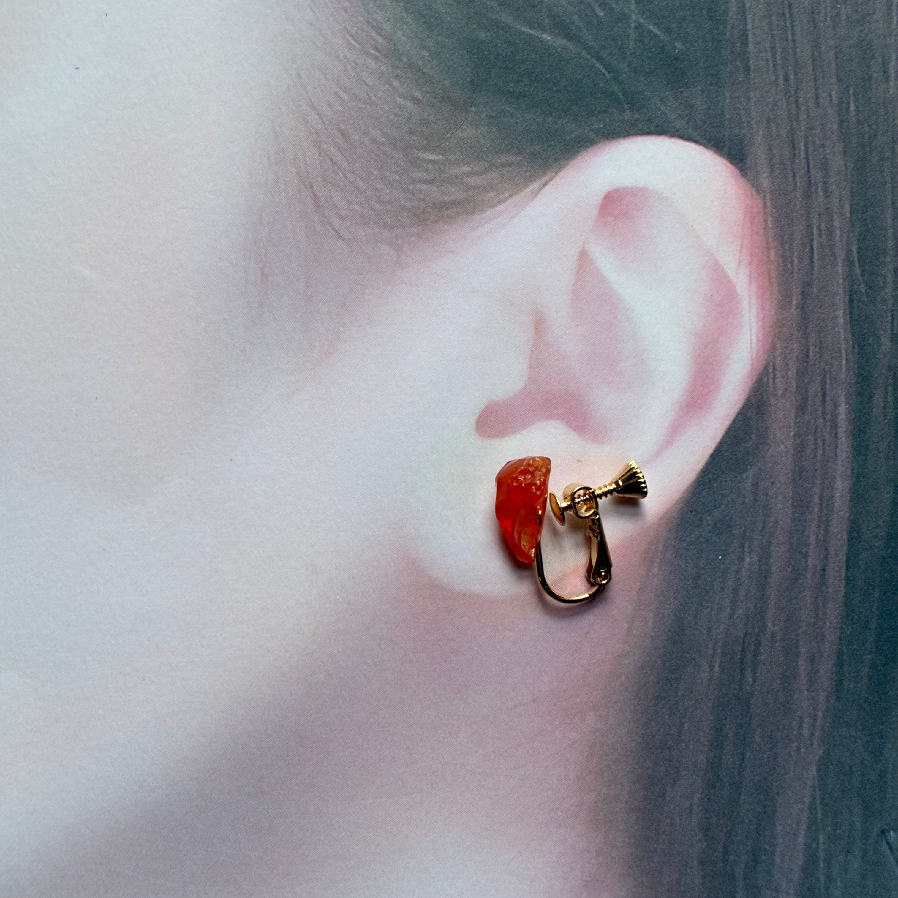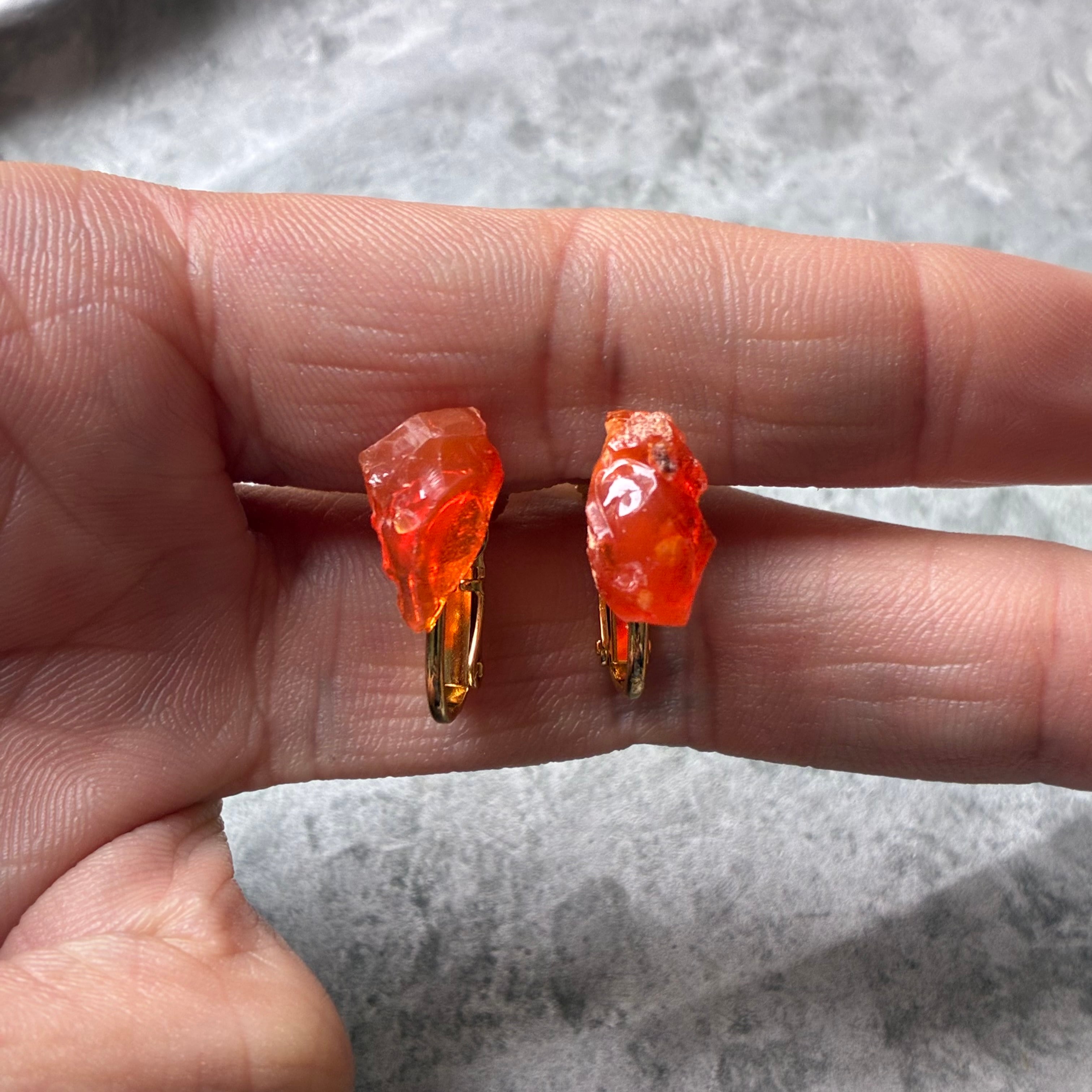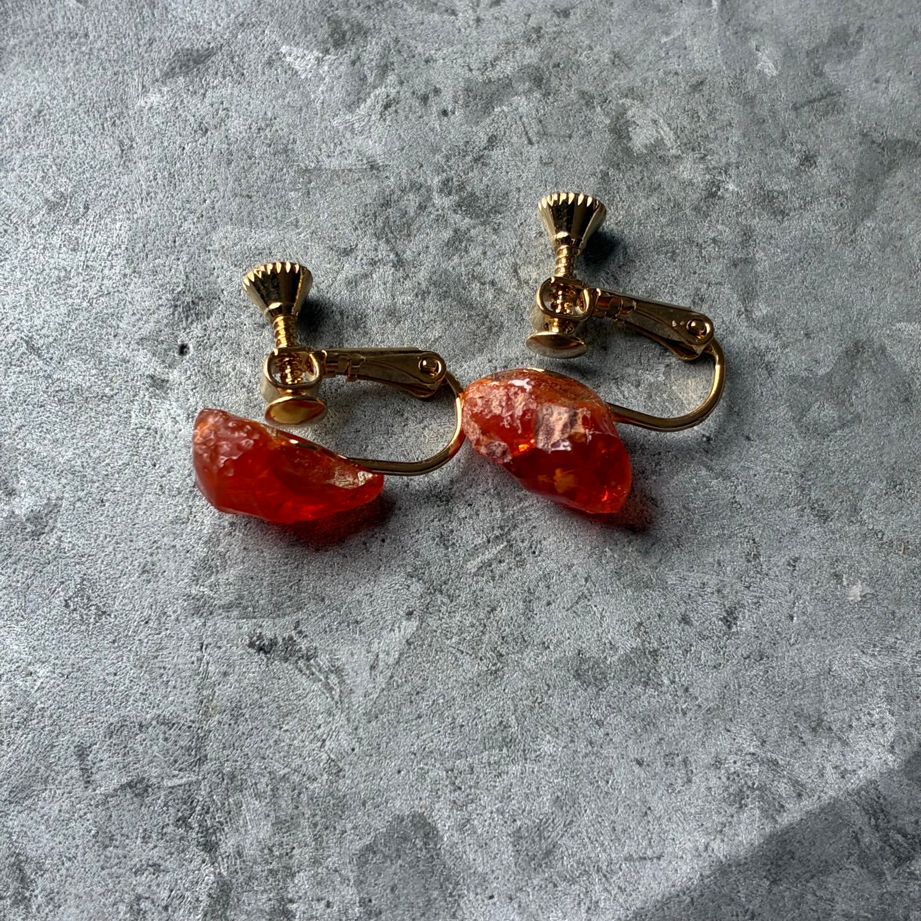 【一点もの】 ファイアオパール 鉱物イヤリング 原石 天然石 ハンドメイド アクセサリー パワーストーン (No.2843)