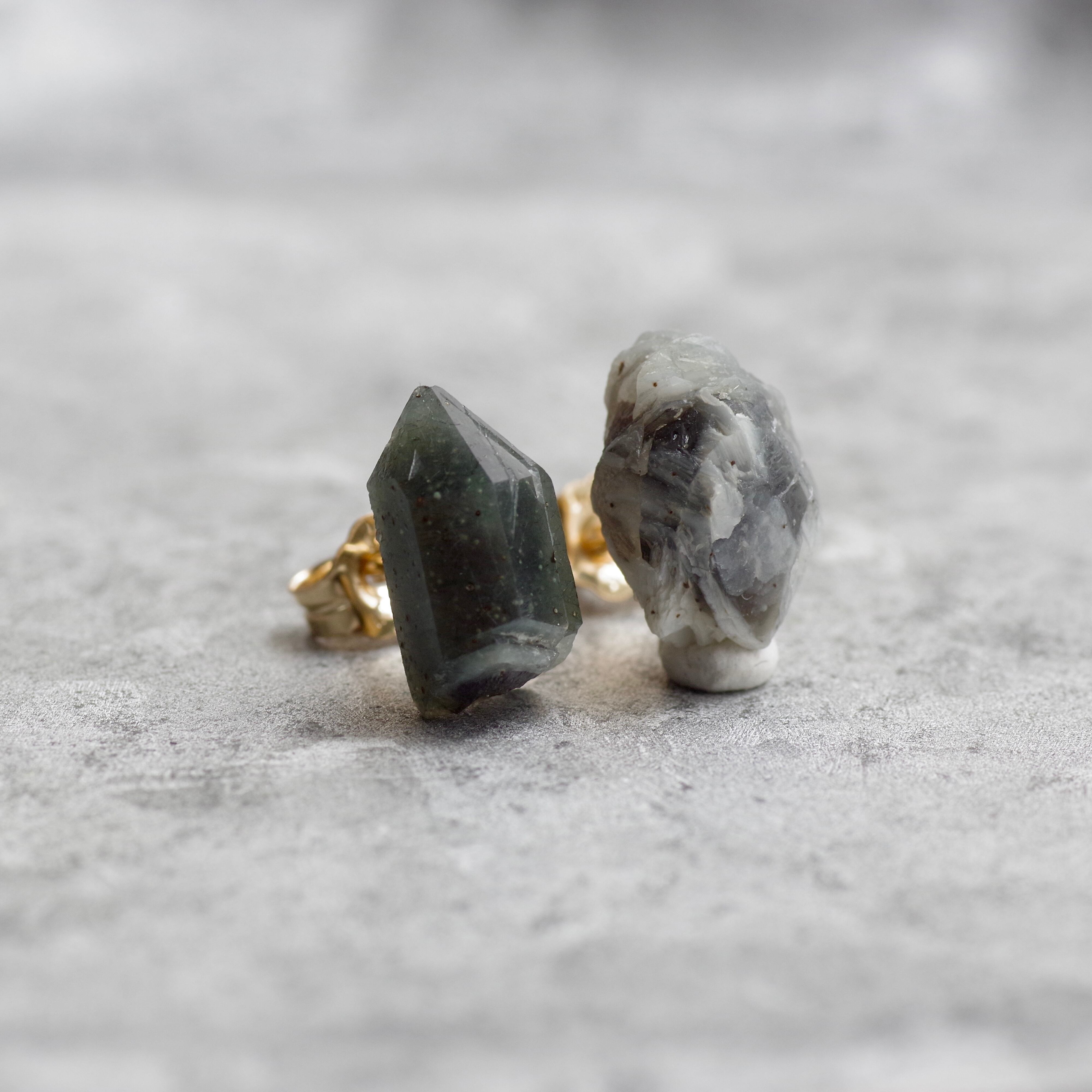 ヘデンバーガイトインクォーツの天然の原石を使用したピアスです。