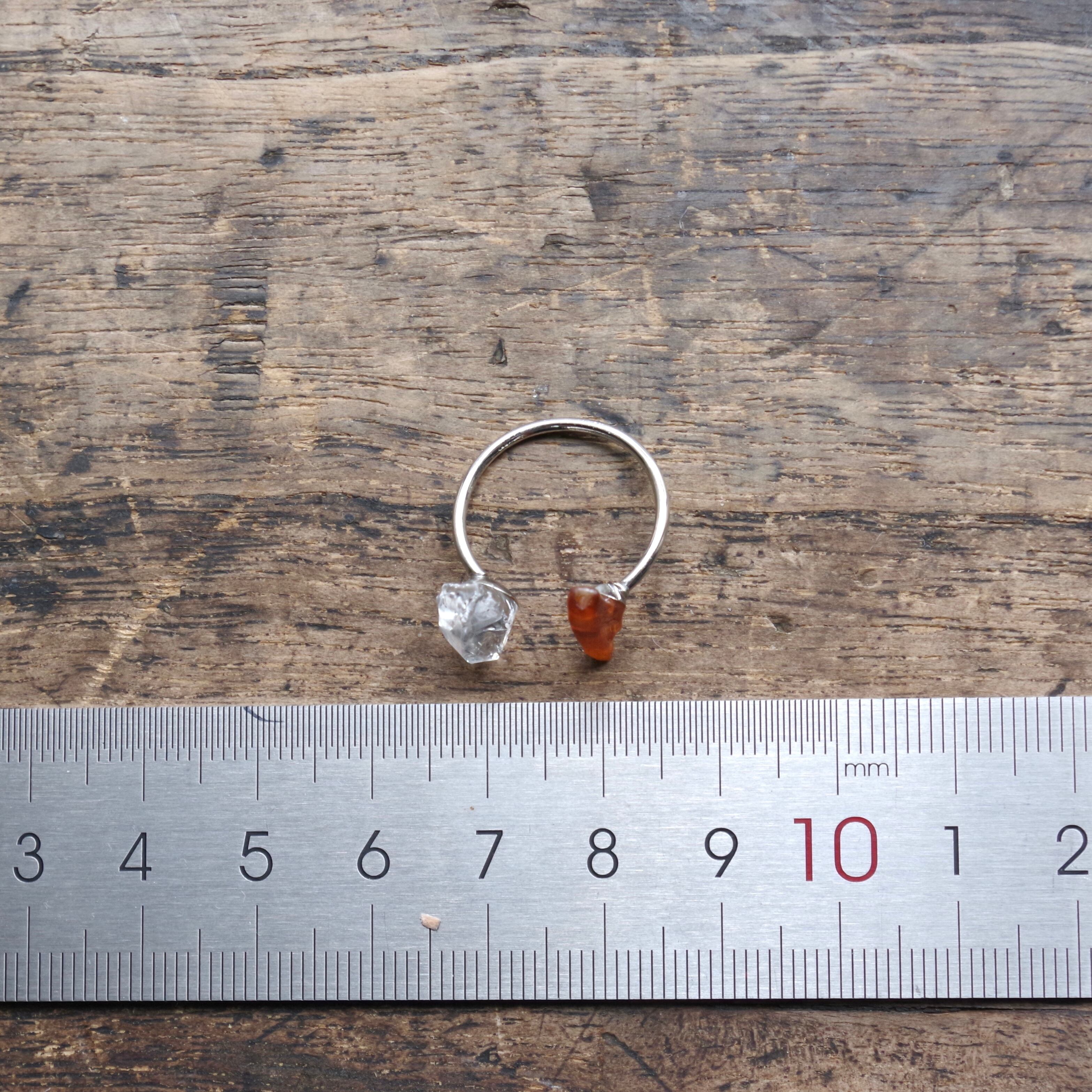 カイヤナイト & クォーツ (水晶)の天然の原石を組み合わせたフリーサイズのリングです。
