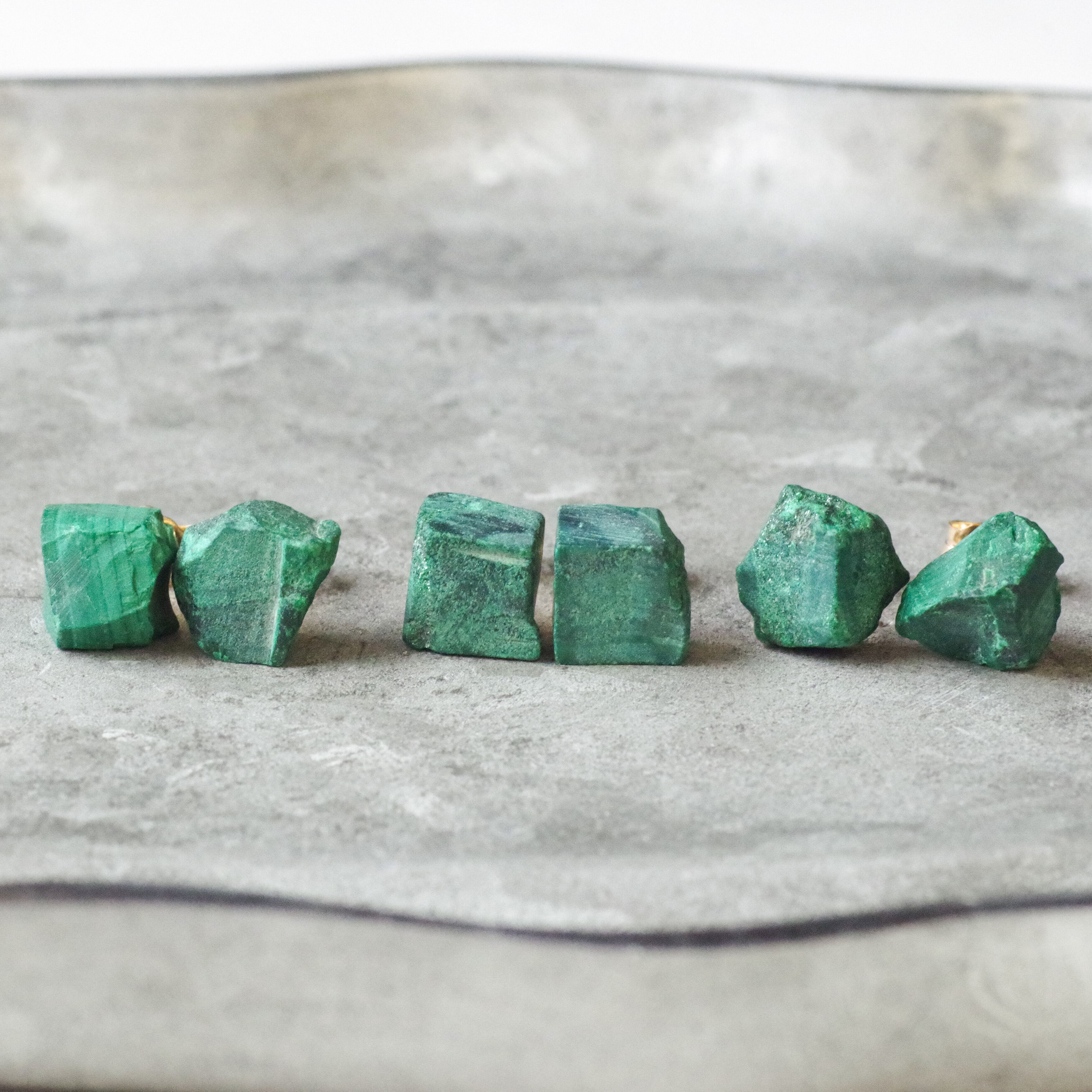 マラカイトの天然の原石を使用したピアスです。(両耳セット販売です。)