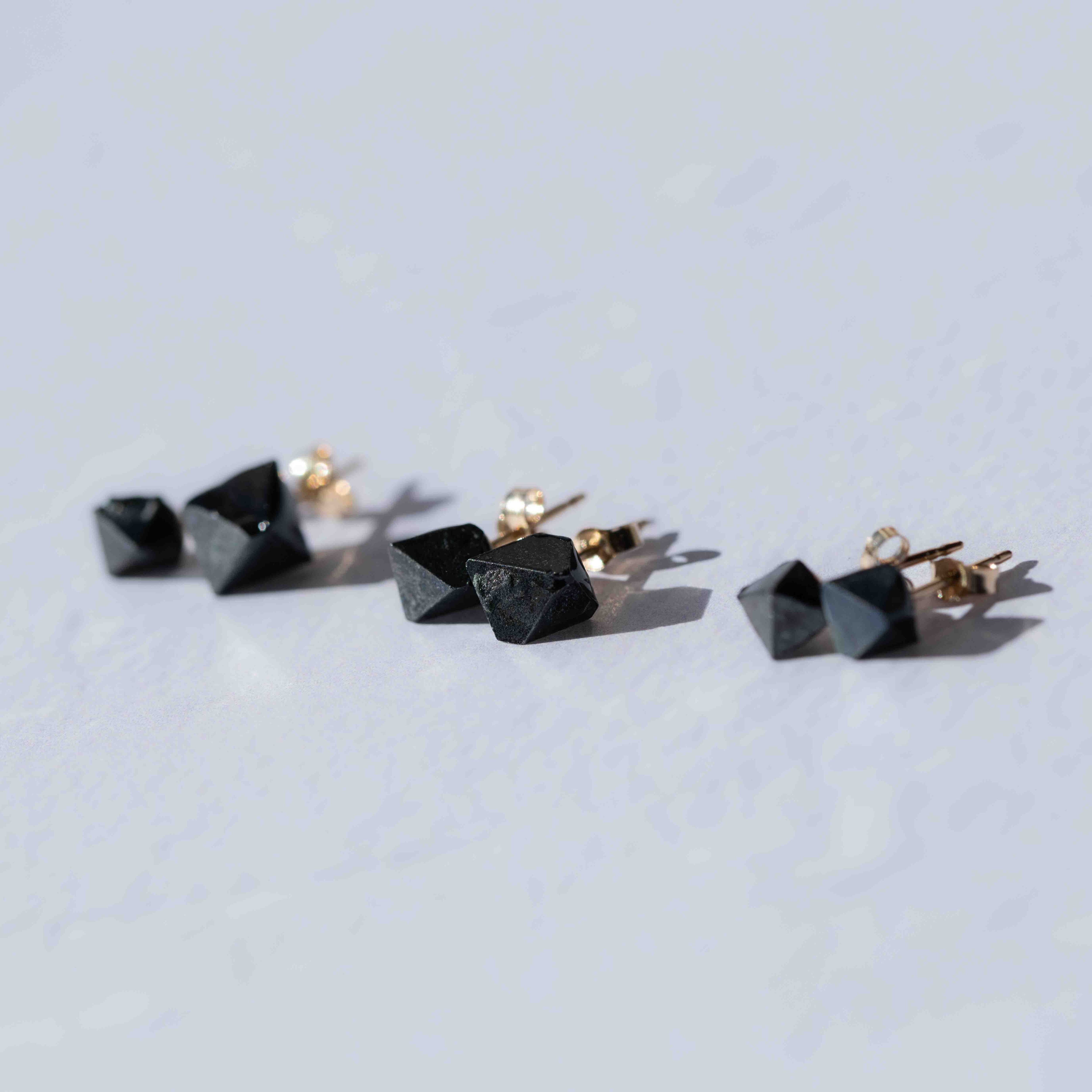 マグネタイトの天然の原石を使用した耳飾りです。(両耳セット販売です。)